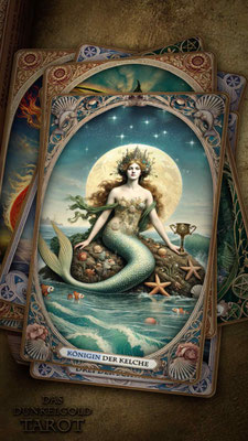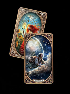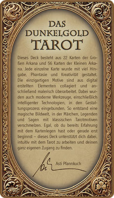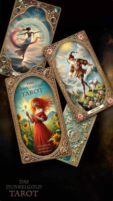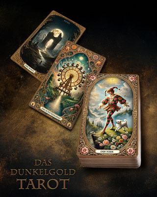 Meine Quintessenz: Künstliche Intelligenz ist ein Werkzeug – nicht mehr und nicht weniger. Ohne eine klare Vision, ohne kreativen Geist und gestalterisches Feingefühl bleibt sie leblos. Viele Prompts führten zu absurden Ergebnissen, manche inspirierten mich, andere waren unbrauchbar. Am Ende war es mein eigener künstlerischer Prozess, der das Dunkelgold Tarot geformt hat: eine Mischung aus KI-generierten Fragmenten, Bildcollagen und digitaler Malerei. Jede einzelne Karte wurde mit Hingabe, Fantasie und viel Zeit entworfen, collagiert und weiterverarbeitet.