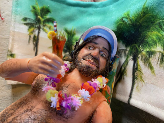 Die Figuren der Dioramen basieren auf handelsüblichen Puppen. Schritt für Schritt wurden ihre Gesichter, Körper, Haare und Kleidung verändert – mit Farbe, formbarem Kunststoff und handwerklichen Techniken. So entstehen eigenwillige Miniaturen, die den Vorlagen aus Singlebörsen-Selfies möglichst nahekommen. Jede Figur wird so zu einer verfremdeten Stellvertreterin für das Thema der digitalen Selbstinszenierung.